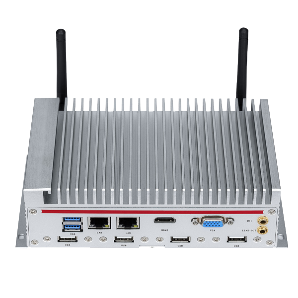 外观设计 :铝合金一体成型,结构紧凑小巧,工艺精细,科技时尚稳定可靠 :纯工业设计,优良的散热结构,全密封铝合金箱体,大面积鳍散热,机箱可抗接触式6KV强电磁干扰,DC12V输入高性能 :板载第7代Intel Core U-Processor i5-7200U处理器 接口丰富 :2*Intel LAN,6*COM ,6*USB, VGA+HDMI,支持同步和异步, 支持1*Msata ,1*2.5寸硬盘位, 1*Mini PCIE,支持WIFI/4G(二选一)