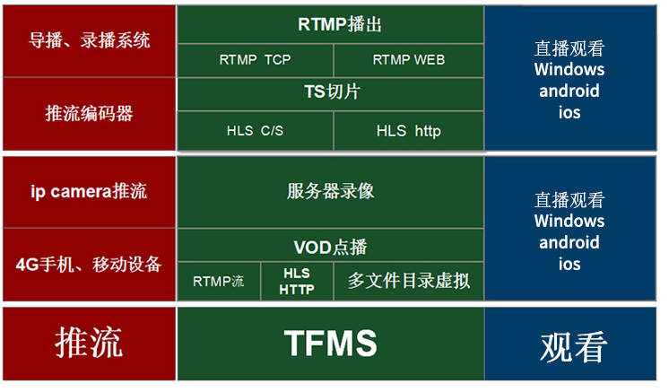 具有电视直播、现场直播、时移电视、即刻回看和视频点播功能,适合OTT TV、IPTV、互联网教育、视频聊天、现场直播和VOD,同时可以应用于军队、政府、银行 、企业证券公司及企业内部培训学习/直播/信息发布等。