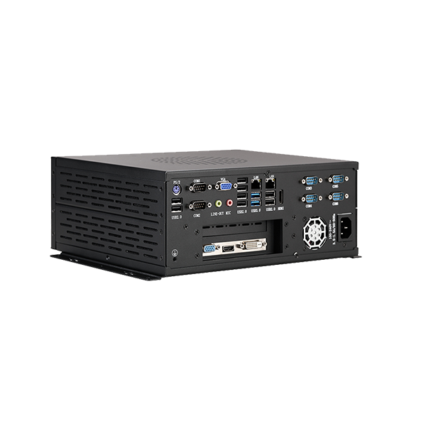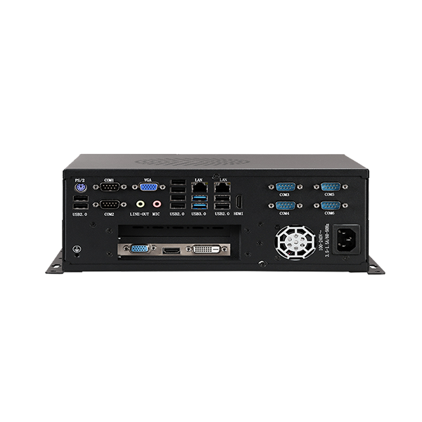 外观设计 : 喷砂黑色外壳,工艺精细,科技时尚稳定可靠 : 纯工业设计,优良的散热结构,机箱内置1*6015高速散热风扇,机箱可抗接触式6KV强电磁干扰;AC100-240V输入或者DC12V输入高性能 小体积 : 支持4/6/7/8/9代Intel LGA1150/1151接口全系列处理器接口丰富 : 2* Realtek LAN, 6*COM,10*USB, 8*GPIO, 1*远程开关,VGA+HDMI,支持同步和异步,支持1*Msata ,1*2.5寸硬盘位,1*MINI PCIE支持 WIFI/4G(二选一),1*PCIEX16(可支持MINI 显卡,长度180CM以内)或2*PCI(可二选一)