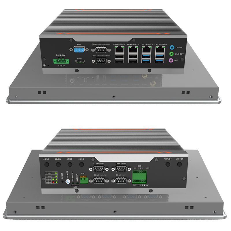低功耗:支持65W及以下6/7/8/9 代1151 Intel Core i7/i5/i3 系列处理器外观时尚:铝合金一体成型,结构紧凑小巧,工艺精细,科技时尚稳定可靠:纯工业设计,优良的散热结构,全密封铝合金箱体,大面积铝鳍散热,机箱可抗接触式6KV强电磁干扰,标配DC12V输入,可选DC12V-24V宽压输入接口丰富:4*LAN(Intel),6*COM,8*GPIO(4*GPI,4*GPO),4*USB3.0+4*USB2.0,1*VGA,1*HDMI,1*远程开关,1*一键还原,1*一键备份,1*SIM槽,1*LINE IN,1*LINE OUT,1*MIC,1*2.5寸硬盘位,1*M.2(KEY-M,2280,SATA SDD),1*M.2(KEY-B,3042/3052,USB3.0信号 支持4G/5G模块),1*MINI PCIE(全高,PCIE+USB2信号,支持WiFi/BT)界面友好:纯屏10点工规电容触控,操作更便利