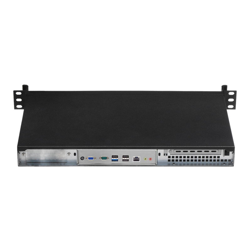 外观:前面板铝型材加工,采用体质、环保1.0mm镀锌钢板高性能:板载J1900处理器稳定可靠:镀锌钢板设计,机箱可抗接触式4KV强电磁干扰;DC12输入接口丰富:1* LAN,标配1*RS232,可选3*RS232(可顺利获得扩展位引出2个COM口),6*USB,1*MIC in,1*Line out,支 持 VGA+LVDS, 支 持 1*Msata, 1*3.5〞 或 2*2.5〞 硬 盘 位 , 1*MINI PCIE,支持1*横向全高扩展位(不占用硬盘位才支持横插全高扩展)